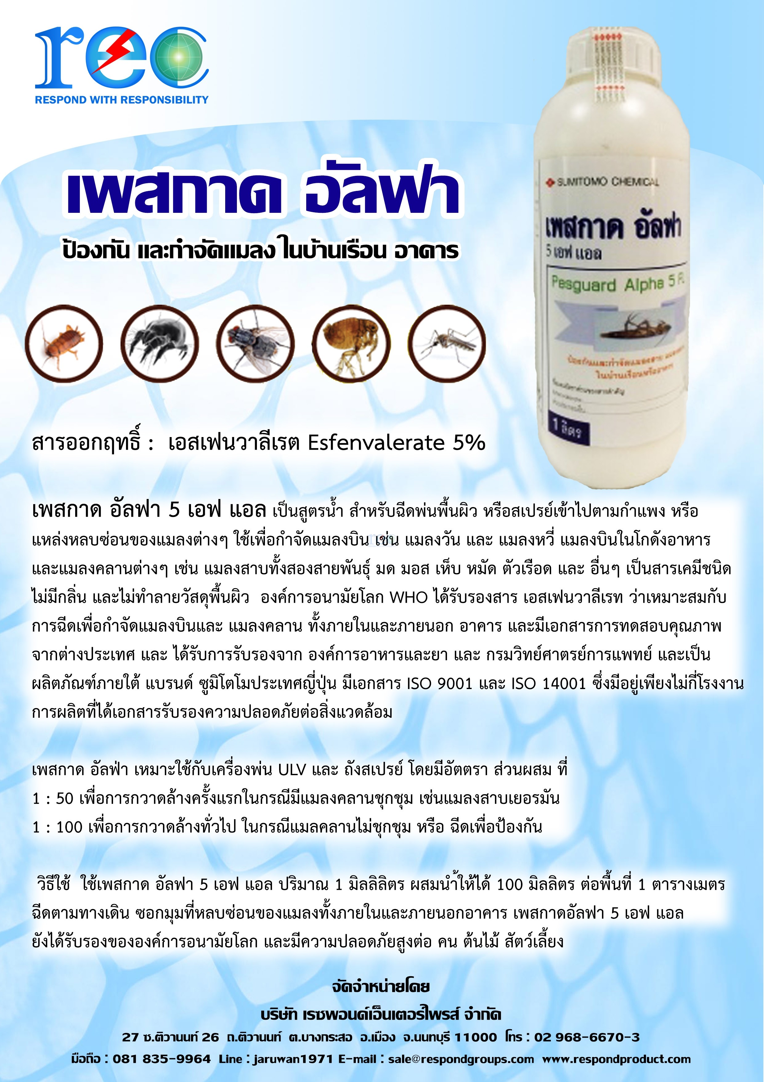 āļŠāļēāļĢāļāļāļāļĪāļāļāļīāđ : āđāļāļŠāđāļāļāļ§āļēāļĨāļĩāđāļĢāļ Esfenvalerate 5%