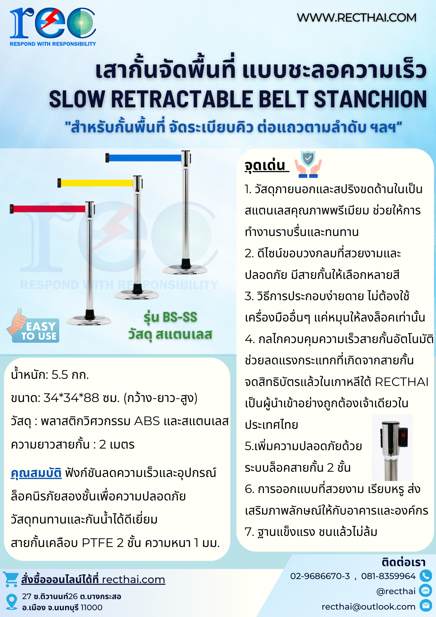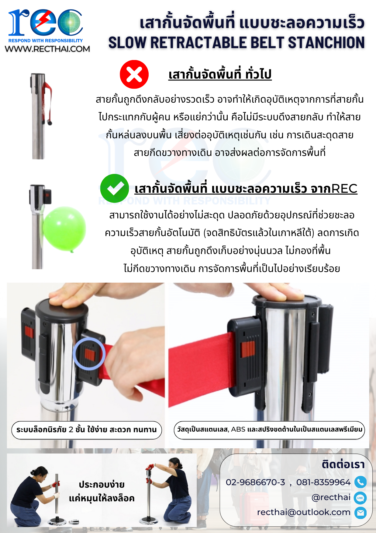 Slow Retractable Belt Stanchion เสากั้นจัดระเบียบคิว แบบลดแรงกระแทก